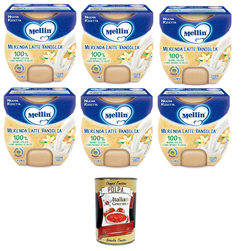 Mellin Merenda Latte e Veniglia al Cucchiaio Snack Milk and Vanilla Spoons 6 x 200 g (2 x 100 g) + Italian Gourmet Polpa 400 g