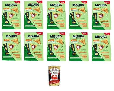Misura Protein Sfoglie con Semi di Chia Protein Puffs with Chia Seeds Measure 12 x 170 g + Italian Gourmet Polpa di Pomodoro 400 g