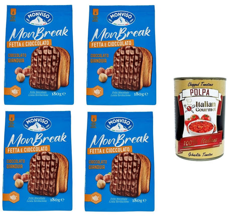 MONVISO Monbreak Fetta e cioccolato gianduja Monbreak Slice and Gianduja Chocolate 4 x 180 g + Italian Gourmet Polpa 400 g