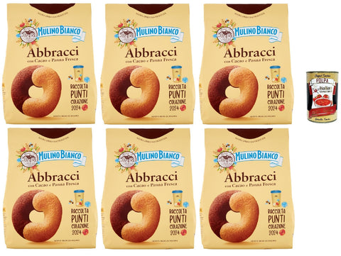 Mulino Bianco Abbracci Biscotti con Cacao e Panna Fresca, Biscuits with Cocoa and Fresh Cream, Biscuits Cookies 6 x 700 g + Italian Gourmet Polpa 400 g