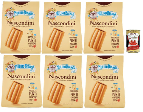Mulino Bianco Nascondini Biscotti con Cioccolato da Mordere, Biscuits with Chocolate in Pieces for Bitting, Cookies Biscuits, 6 x 600 g + Italian Gourmet Polpa 400 g