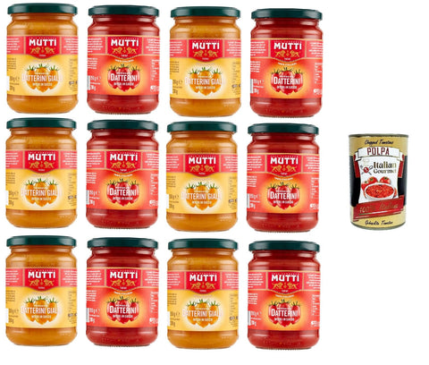 Mutti Pomodori Datterini Gialli & Rossi Interi in Succo Whole Yellow & Red Datterini Tomatoes in Juice Whole Yellow Datterini Tomatoes in Juice 12x .350g + Italian Gourmet Polpa 400g