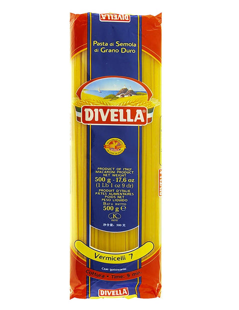 Pasta Divella 100% Italian Vermicelli N° 7 Cooking 9 Minutes 500 g Pack of 10