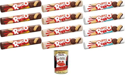 Pavesi Ringo Biscuits Test Pack Cocoa, Hazelnut, Vanilla Tube Pack 12 x 165 g + Italian Gourmet Polpa di Pomodoro 400 g
