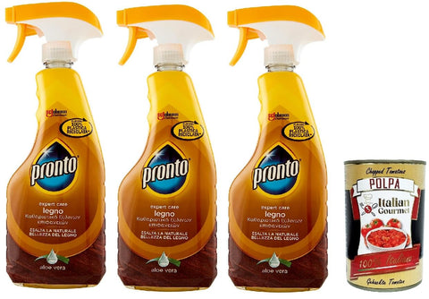 Pronto Trigger Legno. It improves the natural beauty of wood, aloe vera fragrance, detergent, 3 x 500 ml + Italian Gourmet polpa 400 g