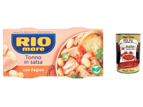 Rio Mare Tonno e Fagioli Ready Meals Tuna Beans 2 x 160 g Instant Food + Italian Gourmet Polpa 400 g Pack of 12