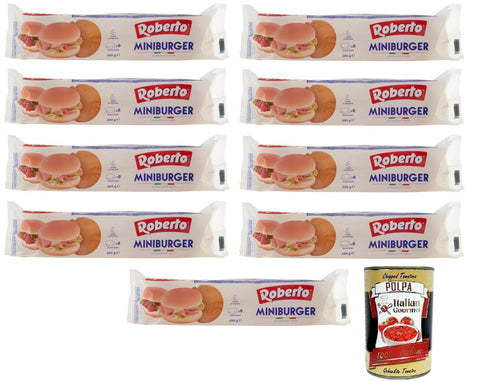 Roberto Miniburger Bread, Pack of 200 g, Each Pack Contains 8 Mini Burgers + Italian Gourmet Polpa di Pomodoro 400 g Tin