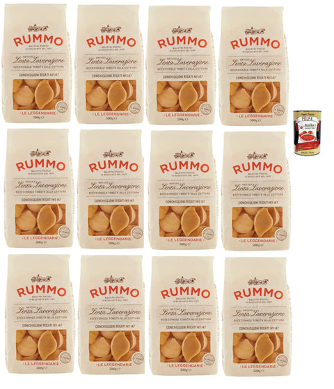 Rummo Conchiglioni Rigati N°147 12 x 500 g - Bronze Drawn Lenta Lavorazione, Large Shell Noodles for Filling & Baking, Premium Pasta from Italy, Bite-Resistant & Boil-Resistant + Italian Gourmet Polpa