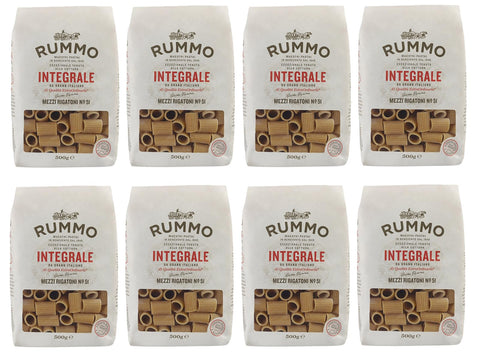 Rummo Pasta Integrale Mezzi Rigatoni N°51, Whole Grain Pasta, Italian Pasta, 500 g, Pack of 8