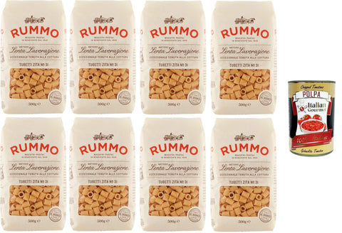 Rummo Tubetti Zita N°31 Durum Wheat Semolina Pasta Italian Noodles 8 x 500 g Pack + Italian Gourmet Polpa di Pomodoro 400 g Tin