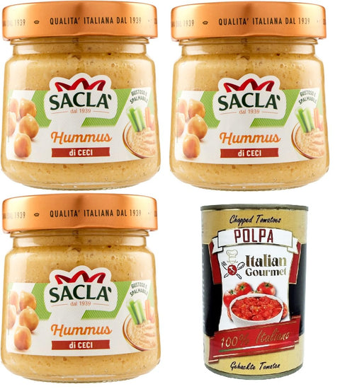 Saclà Salsa Hummus di Ceci Saclà Chickpea Hummus Sauce 3 x 212 g + Italian Gourmet Polpa 400 g