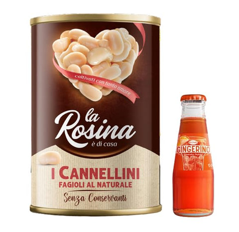 Sanpellegrino 12x La Rosina Cannellini Beans in Natural, Legumes in 400g Tin + 1x Gingerino Recoaro Italian Aperitif 10cl Free
