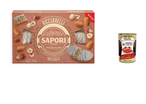 Sapori Ricciarelli Nocciola Hazelnut Fine and Tasty Hazelnuts, Aromatic and Crisp Almonds 140 g + Italian Gourmet Polpa 400 g