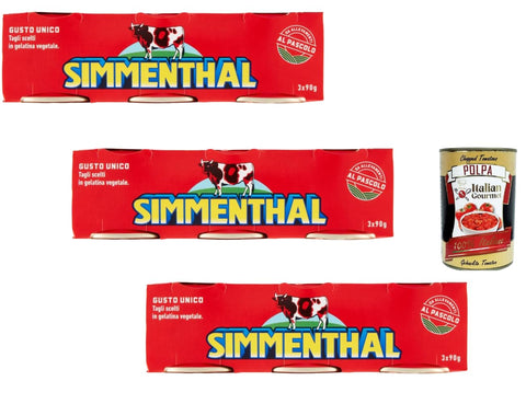 Simmenthal Beef in Vegetable Gelatin, Pack of 3 (3 x 90 g Cans), Italian Meat Specialty for Salads & Sandwiches + Italian Gourmet Polpa