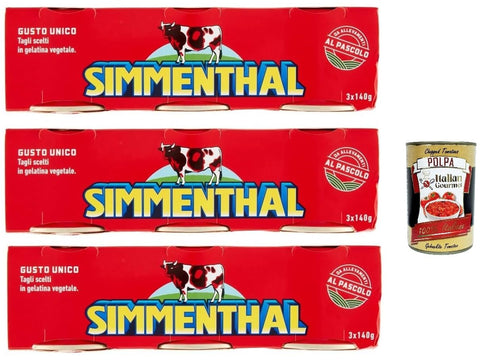SIMMENTHAL Carne in Scatola, Beef in Aspic 3x (3x 140g) 100% Italian Meat Aspic Meat + Italian Gourmet Polpa 400g