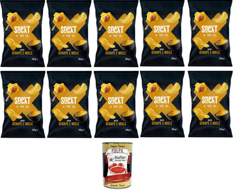 Snext Super Crunchy Chips Mustard & Honey - 10 x 130 g | Extra Thick, Super Crunchy & Irresistibly Aromatic + Italian Gourmet Polpa