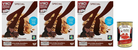 Special K, Cereals Dark Chocolate Rice Flakes Whole Grain Wheat and Barley with Vitamins and Minerals, Breakfast Cereals 3 x 290 g Cereal Flakes + Italian Gourmet Polpa 400 g
