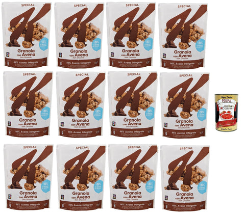 Special K, Crunchy Oat Granola Dark Chocolate Curls (12 x 320 g) - High-Fibre Crunchy Cereal with Dark Chocolate Rasps - with 30% Less Sugar + Italian Gourmet Polpa 400g