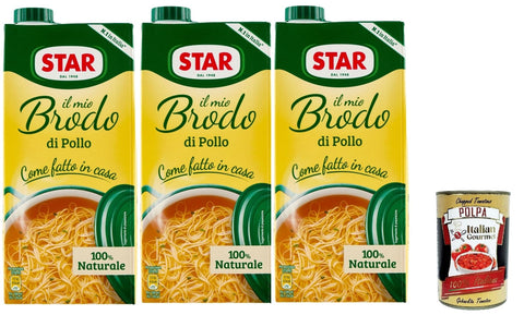 Star Il Mio Brodo Pollo, 3 x 1 L, Ready Made Liquid Broth, 100% Natural, No Preservatives, Gluten-Free and Added Glutamate-Free + Italian Gourmet Polpa 400 g