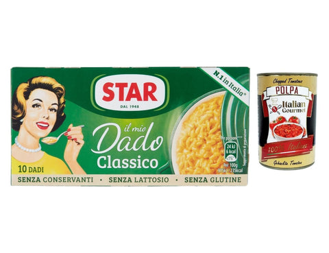 STAR Il mio Dado Classico Brewing Cube 6 x 100 g - Broth without Gluten, Lactose, Preservatives, Ideal for Soups & Sauces + Italian Gourmet Polpa